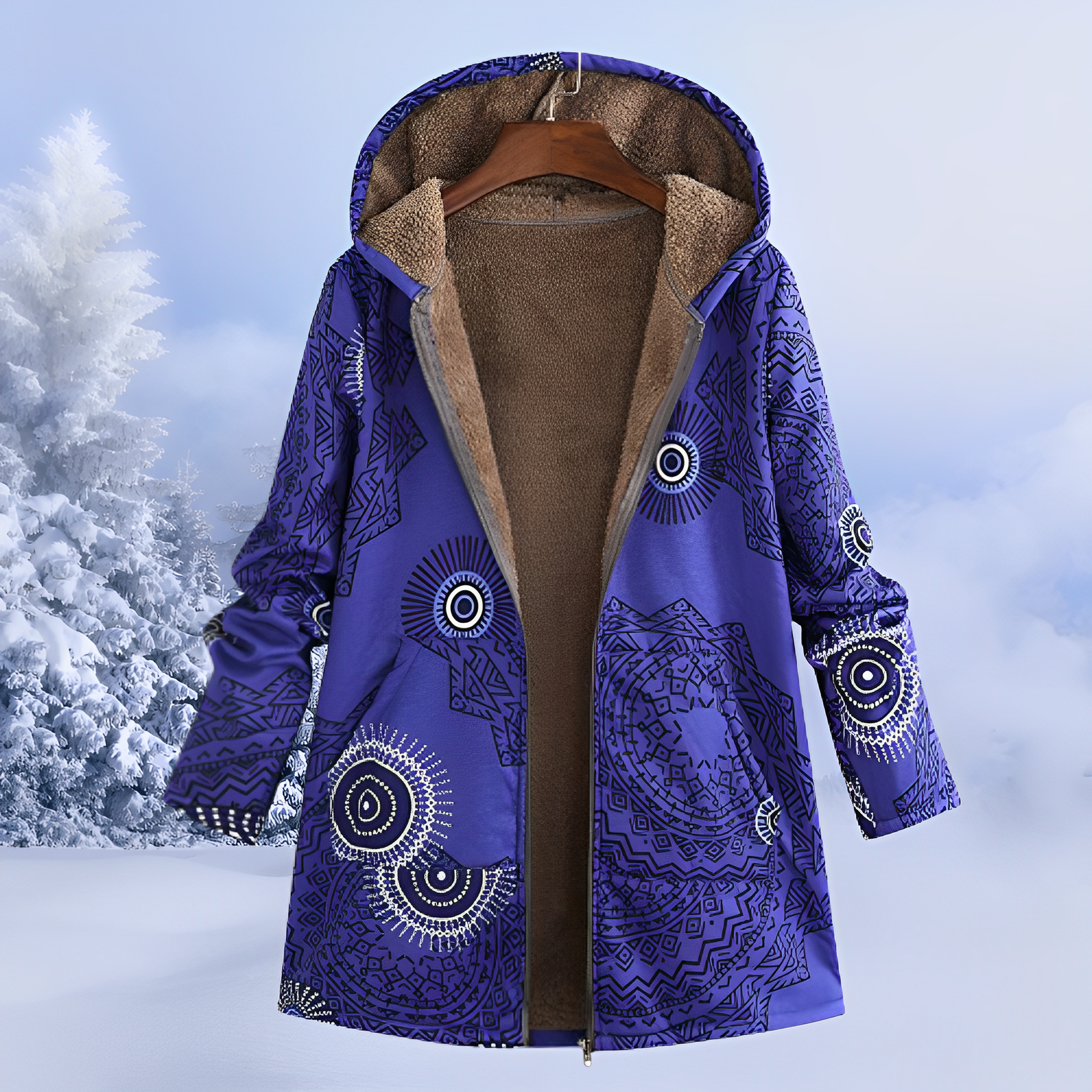 Damen-Winterjacke mit weichem Teddyfutter & Ethno-Muster