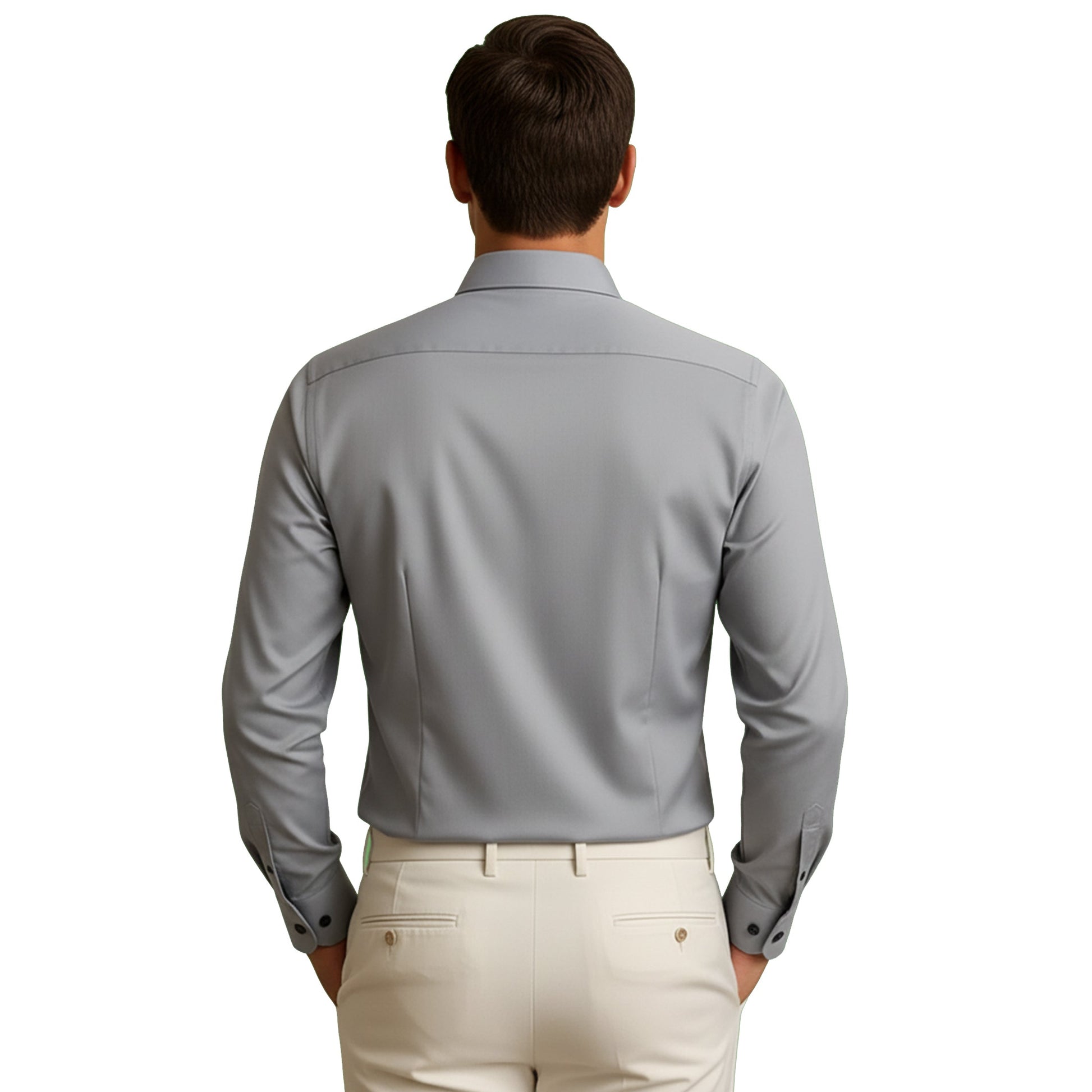 – Kragen & Details : Feine Nähte, subtile Kontrastknöpfe