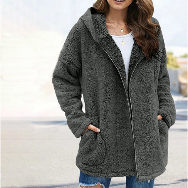 Annely | Damen Teddyjacke mit Kapuze im Loose-Fit Stil